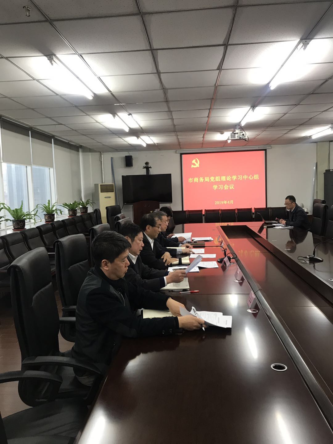 2019年4月29日,市商务局召开党组理论学习中心组学习会议,专题学习《中国共产党支部工作条例(试行)》《中国共产党党组工作条例》《关于加强和改进中央和国家机关党的建设的意见》《中共中央关于加强党的政治建设的意见》《中国共产党农村基层组织工作条例》《中国共产党政法工作条例》等6部党内法规制度精神,会议由局党组书记、局长张坚强主持。