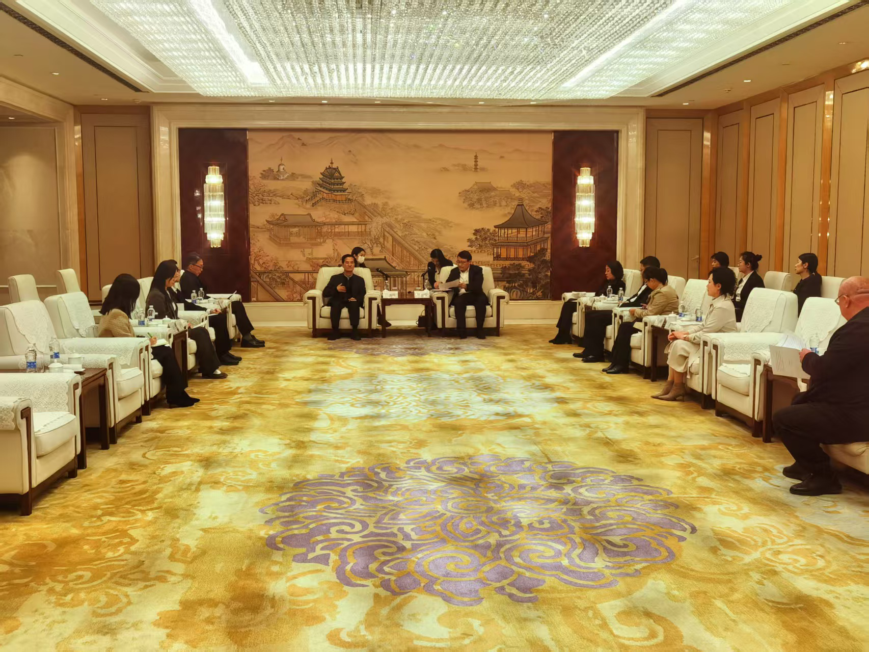 为进一步深化对韩经贸合作,加快我市与韩国在生命健康领域深化合作,应我局邀请韩国保健产业振兴院上海代表处首席代表白承洙一行来沈考察访问。4月16日下午,朱翎局长、初祺副局长陪同赵伟副市长会见代表团一行,双方围绕深化银发经济、冰雪经济、生命健康和医疗保健等领域经贸合作进行深入交流,并就共同策划举办2025沈阳韩国周达成多项共识。市政府外办、市民政局、市文化旅游广电局、市卫生健康委、市体育局分管负责同志陪同会见。