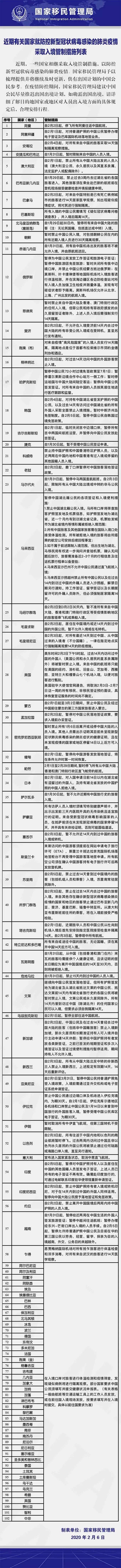 近期有关国家入境管制措施提醒(2020.2.6)